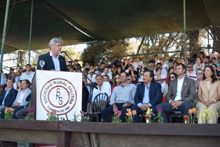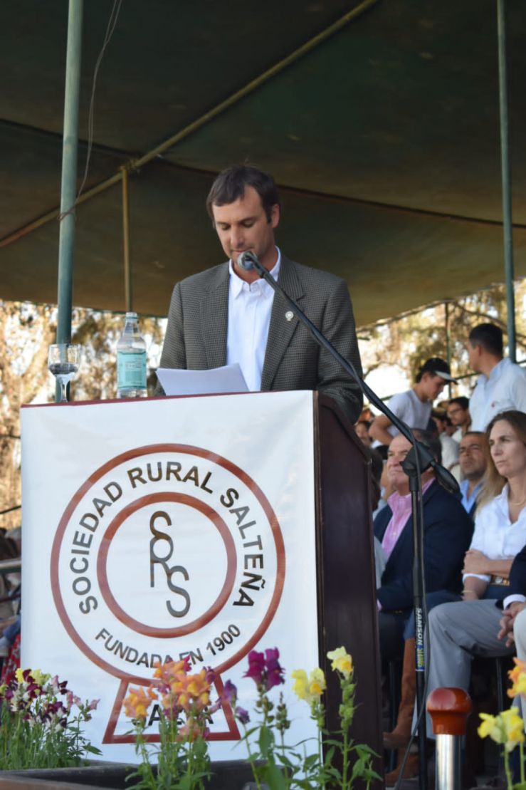 Finalmente el Gobernador de la Provincia, Gustavo Sáenz hizo uso de la palabra y felicitó a los productores y expositores, especialmente a nuestra entidad por la organización de la muestra en donde se destacan la calidad de los productos que genera el sector al cual destacó como fundamental para el desarrollo del país. Recordó que desde el Gobierno provincial se declaró el interés provincial por dicha exposición, la exención de sellos e ingresos brutos para todas las operaciones concretadas durante la muestra, además del crédito del Ministerio de la Producción a través el fondo provincial de inversiones para la compra de reproductores, siendo este año por 700 millones de pesos.